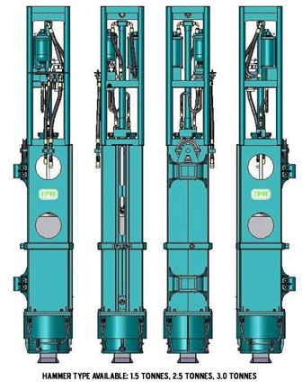 ไอพีเอช 250 ปั่นจั่นตอกเสาเข็มไฮโดรลิค มีเครื่องจักรยกค้อนตอกเสาเข็ม 3 ชนิด คือ ขนาด 1.5 ตัน 2.5 ตัน และ 3.0 ตัน เครื่องจักรยกค้อนนี้สามารถสับเปลี่ยนการใช้งานได้ตามความเหมาะสม สามารถขับเคลื่อนเสาเข็มได้ถึง 250 x 250 ตร.มม. และเส้นผ่าศูนย์กลาง 300 มม.